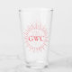 Sunbeam style drawing with monogram. Colour pink custom tumbler glasses. Transparent glass cups.