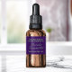 a vintage style bath and body care product label with a purple background and green text.