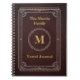 An ornate scrollwork border on a simulated leather background. Customize the text and the Initial.