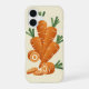 Retro illustration of stylized carrots with a rounded shape and soft tones.