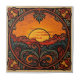 Vintage Sunset Flourish Art Nouveau Floral Tile