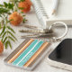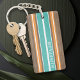 Un motif rayé coloré et rétro en bleu et orange d'aqua sur un arrière - plan imprimé en faux bois. Un design rayé vintage avec un aspect plage et surf. Ajoutez votre nom ou votre monogramme pour en faire un cas de téléphone personnel qui se démarquera parmi vos amis. Le nom est une police serif fine.