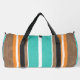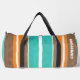 A colourful, retro stripe design in aqua blue and orange on a faux wood print background. A vintage surfboard stripe design with a beach and surf look. Add your name to make this a personal bag that will stand out amongst your friends. The text is a retro serif font.