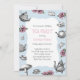 Vintage Tea Party Birthday Baby Blue Stripes Invitation