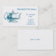 A pretty business card for a tea house or coffee shop. It features a vintage drawing of a blue tea pot on the left side and a white background with blue text on front and back. The text on front and back is customizable.