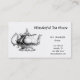 A pretty business card for a tea house or coffee shop. It features a vintage drawing of a black and white tea pot on the left side and a white background with black text on front and back. The text on front and back is customizable.