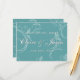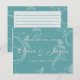 This advice and well wishes card has a double-sided vintage teal floral background. The front contains customizable bride and groom names and text and the back is lined for handwriting.