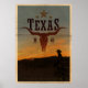 Sunset with cowboy featuring Texas and longhorn cattle skull from our Texas cowboy collection