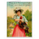 Original vintage Thanksgiving greeting illustration with a girl and turkey.