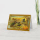 This card caught my eye because of its warm colors and careful drawings of Thanksgiving turkeys, pumpkin, and the Colonial couple. The card itself is even more like a painting than was the Zazzle picture on the website. The warm colors of the sunset behind the foreground figures give this
