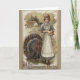 Retro / Vintage Thanksgiving greeting card. Lovely woman feeding her turkey! With Thanksgiving Greeting!