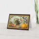 Vintage Thanksgiving image of a Turkey in the middle of a pumkin and fruit. In the corner it says "Thanksgiving Greetings".
