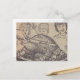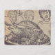 This vintage Thanksgiving postcard features a classic 1950's family sitting down to carve the turkey. The design shows a succulent turkey, with Dad's hands reaching in with a carving knife and fork. The partial faces of Sister, Brother, and Mom are also visible. The black drawing and the authentic yellowing of the newspaper add to the nostalgic feel. This postcard is the perfect way to invite people to your Thanksgiving dinner. So, tie on your frilliest apron, put on your pearls and make June Cleaver proud!