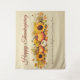 This old fashioned company holiday party tapestry features a vintage drawing of orange pumpkins, fall leaves, and cute autumn sunflowers. Nostalgic Happy Thanksgiving decor with brown script of your business name and personalized professional message on the back for clients and friends.