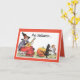 Vintage picture of a witch playing music, while a cat and owl dance together, is featured on this Halloween greeting card. Front of card reads, "This Halloween...", and inside of card reads, "Dance the night away and have a "Boo-tiful" Halloween too"! A non-scary greeting card to send for Halloween.