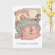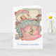 A vintage greeting card image features a sweet baby bundled under soft bedding in a rocking bed. The front of the card says "To Welcome a Sweet Baby" and the message inside the card is "Congratulations! A precious new baby has come from above to live in your hearts, to fill you with love." The pink and blue colours of the card make it appropriate for either a boy or girl.