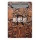 Modern brown mini clipboard with a black monogram and white typography on a tooled faux leather background. Personalize with your name, initial.