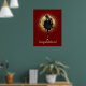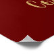 Fun way to send congratulations to those near and far. Design features vintage photo cutout of woman in dress and top hat dancing on top of bottle of champagne with gold ornate disc on dark red / maroon background and gold customizable text.
