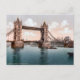 Postcard with a vintage photo lithograph of the Tower Bridge in London, England from 1895. Digitally cleaned, enhanced and artistically rendered to resemble pen and ink with watercolors. Tower Bridge, built 1886-1894, is a combined bascule and suspension bridge which crosses the River Thames. It is close to the Tower of London, from which it takes its name, and has become and iconic symbol of London.