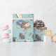 This adorable children's gift wrap pattern features an appealing selection of vintage toys highlighted in soft brown and blue against the background colour of your choice (we've chosen a light turquoise as an example). Included in the pattern are some retro favourites... a rocking horse, spinning top, rocket ship, airplane, toy soldier and child's scooter. Search ID783 to see additional colour choices and other products with this design. Original drawing courtesy of FreePik@macrovector.
