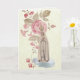 This is a traditional Catholic First Holy Communion Invitation with an image of Our Lady of Fatima and pink roses. All text and fonts inside can be modified.
