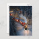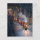 What a perfectly sweet setting during Christmas as the train rounds the track. The lights from the train light up an otherwise dark night. The pine trees with snow softly gather around a beautiful old train. Lovely! Exceptional. While all the colors are muted, the printing is perfect for a lovely winter train ride scene.