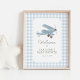 Welcome friends and family to your baby shower with this blue gingham travel themed welcome sign.