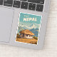 Embark on a journey to the majestic peaks and vibrant culture of Nepal with this captivating retro travel-inspired design. Overflowing with nostalgia and vintage charm, this design depicts Nepal's stunning Himalayan landscape in a retro aesthetic reminiscent of classic travel posters from yesteryear.