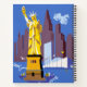 Vintage travel poster for Allegheny Airlines showing the Statue of Liberty and the New York City skyline, with the Empire State Building and the Chrysler Building, among others. circa 1950