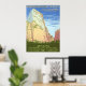 Vintage travel poster for Zion National Park, shows view of a cliff at Zion National Park, circa 1938.