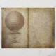 Vintage traveller design or steampunk style hot air balloon on old worn writing parchment.