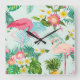 Vintage Tropical Flowers And Birds Square Wall Clock