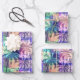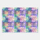 A cool retro collage of palm trees in pink, purple, green, teal and turquoise on sheets of wrapping paper are fun for a birthday or any occasion.