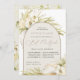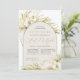 Tropical chic bat mitzvah invitations in an alluring neutral colour palette feature a central arched element bearing your ceremony and celebration or party details, accented with pale green watercolor palm fronds, beachy island foliage, white orchids, boho dried botanicals and pampas grass.