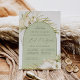 Tropical chic bat mitzvah invitations in an alluring neutral colour palette feature a central arched element bearing your ceremony and celebration or party details, accented with pale green watercolor palm fronds, beachy island foliage, white orchids, boho dried botanicals and pampas grass.