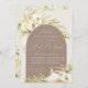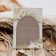Tropical chic bat mitzvah invitations in an alluring neutral colour palette feature a central arched element bearing your ceremony and celebration or party details, accented with pale green watercolor palm fronds, beachy island foliage, white orchids, boho dried botanicals and pampas grass.
