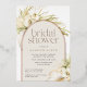 Tropical chic bridal shower invitations in an alluring neutral colour palette feature a rose gold foil arch bearing your bridal shower details, accented with pale green watercolor palm fronds, island foliage, white orchids, dried botanicals and pampas grass.