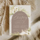 Tropical chic baptism or christening invitations in an alluring neutral colour palette feature a central arched element bearing your church ceremony and celebration or party details, accented with pale green watercolor palm fronds, beachy island foliage, white orchids, boho dried botanicals and pampas grass.