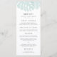Our island chic wedding menu features your starter courses, entrees and desserts in elegant grey lettering, accented with two sheer seafoam green tropical monstera leaves in a vintage illustration style. Coordinates with our Vintage Tropics wedding invitation collection, perfect for beachside affairs or destination weddings.