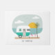 Vintage Turquoise Camper Beach Flamingos Doormat