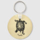 Fun keychain with vintage turtle illustration on antique paper background