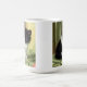 Magic Mug featuring a darling tuxedo kitten! This black and white kitten cutely poses on green and red blankets. A wonderful gift for cat lovers and Victorian art enthusiasts!