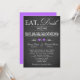 This vintage style typographical black and white chalkboard LOOK wedding invitation has a variety of fonts with scrolls and two lilac purple coloured hearts on it. It is shown here on basic paper. It is easily customized with your own information. There is some customizable text that you can edit the way you require. ALSO, please note that everything will print as it appears on your monitor. Zazzle will not edit anything for typos or mis-alignment etc., and I will not see it once you have ordered it. If you need help with your wording, please email me BEFORE you order. If there are any other items you need to make your event extra special, please email your request to niteowlstudio@gmail.com.