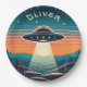 Vintage UFO at Sunset Personalized Paper Plate