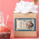 Vintage illustration Victorian Happy Valentine's Day holiday design featuring a cherub wearing a mailman hat is delivering the mail, love letters to my Valentine. Antique love and romance ephemera. A decorative golden border surrounded by gold hearts on a blue background.