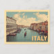 A stunning vintage-style postcard capturing the romance of Venice, Italy. The image features the iconic Grand Canal lined with historic, colourful buildings and traditional gondolas floating on the water. The classic, faded colours and retro filter give this image an authentic vintage travel poster feel, evoking European charm. This card is perfect for sending a thoughtful message, commemorating a trip to Italy, or framing as a small piece of city art. A great design for anyone who loves European travel, canals, or the beauty of this unique waterfront city.