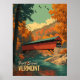 Step into the nostalgic charm of Vermont with this vibrant vintage-style travel poster. The artwork showcases a classic red covered bridge spanning a serene river, surrounded by fiery autumn foliage and rolling green hills under a crisp blue sky. Inspired by mid-century travel propaganda, this piece blends historical charm with the natural beauty of Vermont’s iconic landscapes. Perfect for travelers, nature enthusiasts, or anyone who dreams of New England’s tranquil countryside. it adds timeless elegance to any space while celebrating Vermont’s scenic allure.