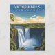 Witness the raw power of nature with this incredible Victoria Falls Zimbabwe travel postcard! This captivating illustrated design features the majestic Victoria Falls, known locally as 'Mosi-oa-Tunya' ('The Smoke that Thunders'). The stylized art beautifully captures the immense force of the waterfall and the plumes of mist rising above the Zambezi River.