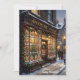 Send a uniquely nostalgic greeting this season with this beautiful vintage apothecary Christmas card. The charming illustration features a snowy Victorian street scene focused on an old-fashioned pharmacy storefront, warmly glowing with festive garlands, red bows, and antique medicine bottles in the window displays. Perfect for pharmacists, pharmacy technicians, medical professionals, or anyone who loves historical holiday aesthetics. The front features the text "Happy Holidays!", while the rich, deep red reverse side includes a delicate snowflake motif and easily customizable template text so you can add your own personalized seasonal message, name, or family greeting.