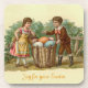 Vintage Victorian Easter beverage coaster featuring a boy offering a basket of Easter eggs to his lassie!
